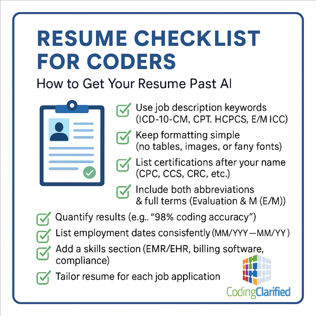 In medical coding, precision is everything—and the same is true for your resume. A well-structured, keyword-rich resume shows both AI and employers that you’re detail-oriented and ready to succeed.