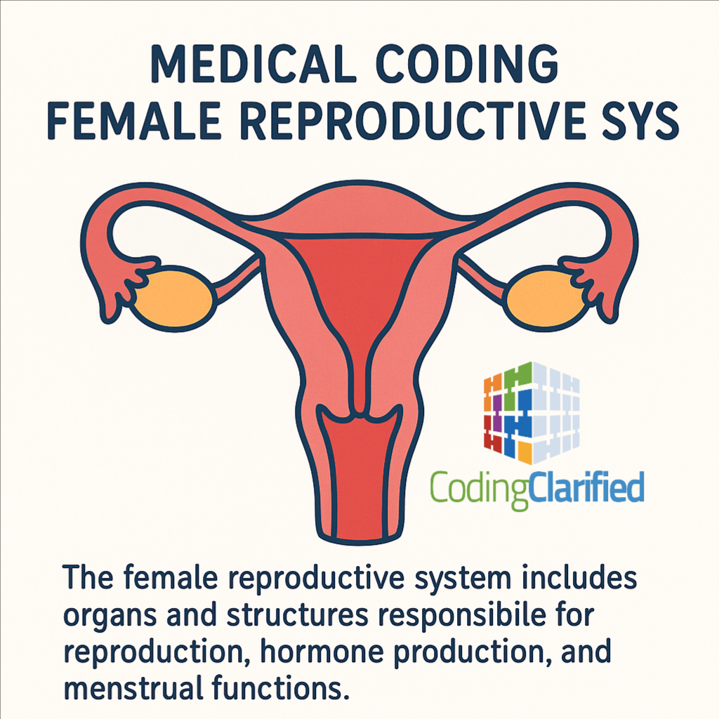 The female reproductive system includes organs and structures responsible for reproduction, hormone production, and menstrual functions. For medical coders, this body system is commonly seen in OB/GYN offices, hospitals, surgical settings, and preventive care visits. Accurate coding is essential for proper reimbursement and medical record compliance.