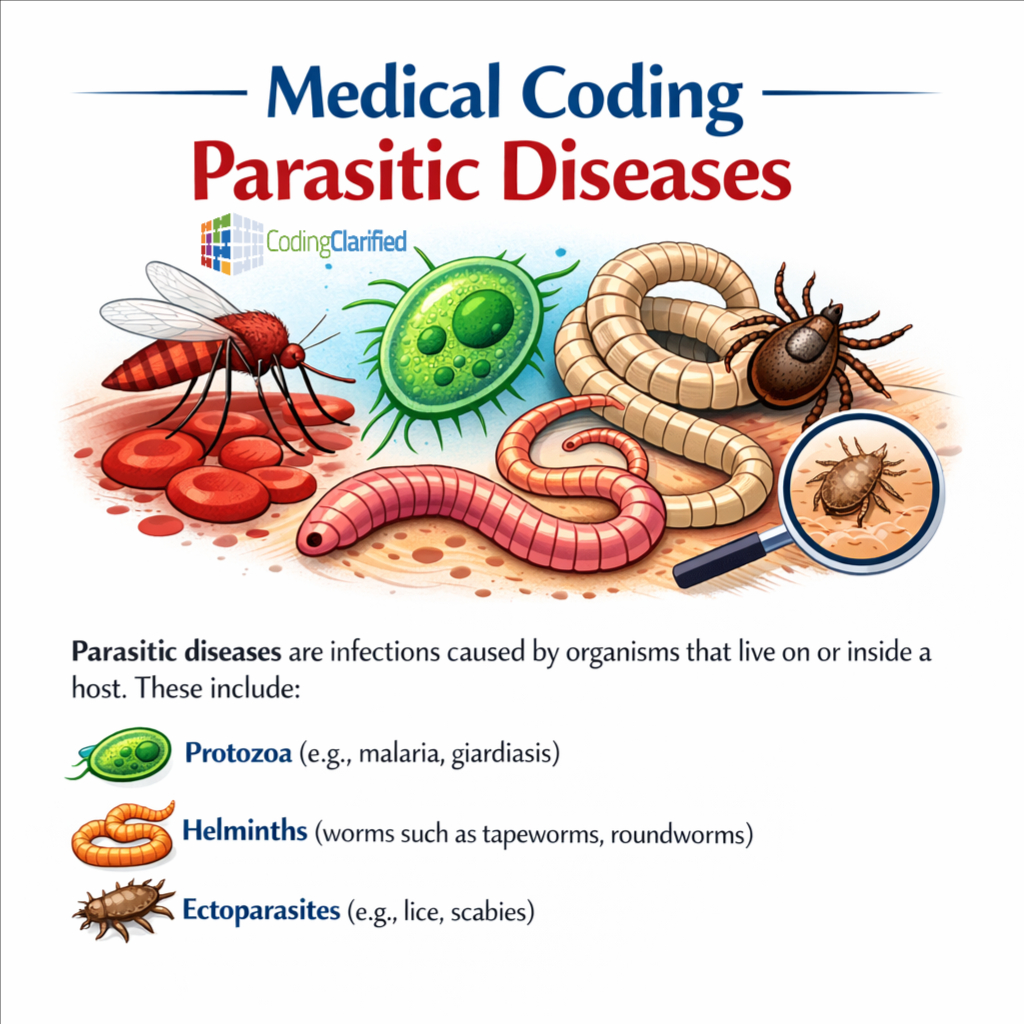 Parasitic diseases are commonly tested on the CPC exam and frequently appear in real-world coding, especially in infectious disease, gastroenterology, and travel-related encounters. Understanding how to correctly code parasitic infections requires strong knowledge of ICD-10-CM guidelines, documentation review, and attention to specificity.