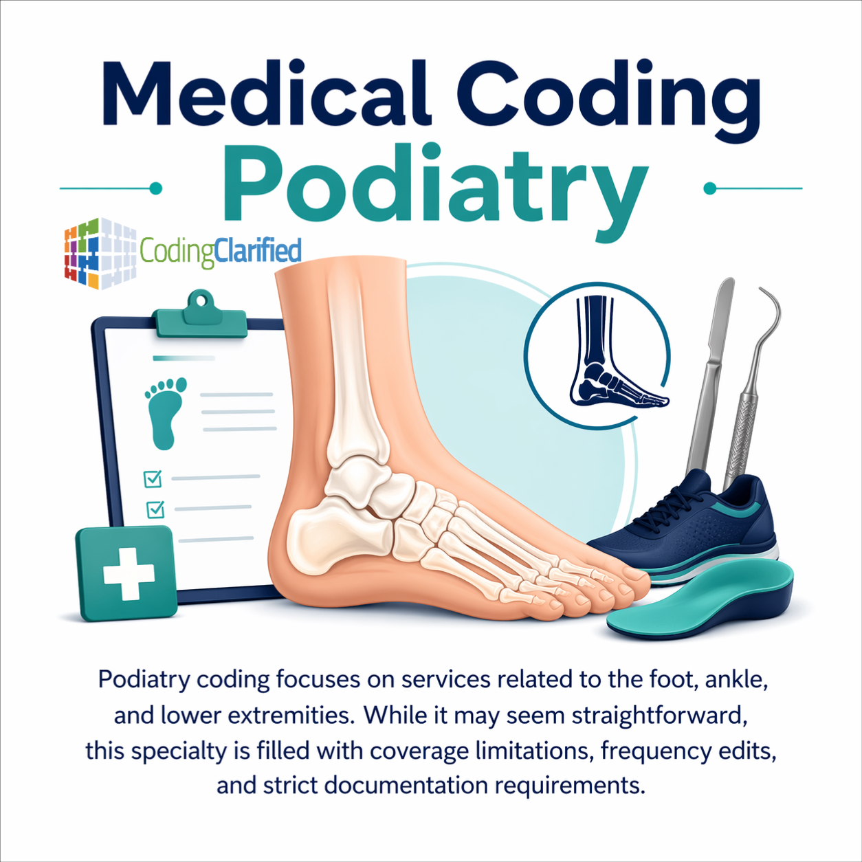 Podiatry coding focuses on services related to the foot, ankle, and lower extremities. While it may seem straightforward, this specialty is filled with coverage limitations, frequency edits, and strict documentation requirements—making it a common trouble spot for new coders and even experienced professionals.