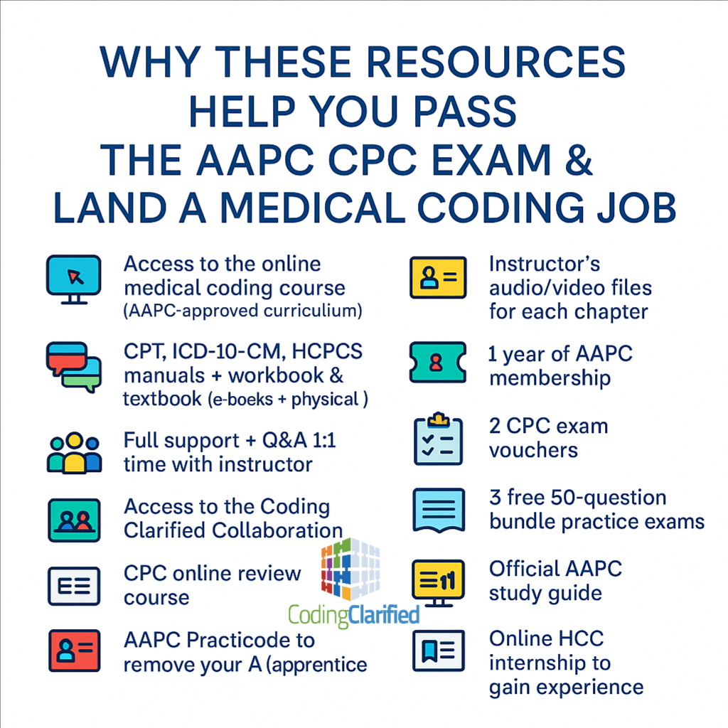 Below is a breakdown of why each resource matters for exam success and for launching your medical coding career.