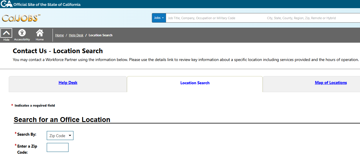 - Select the closest location under the drop down menu for Find Your Job Service Office