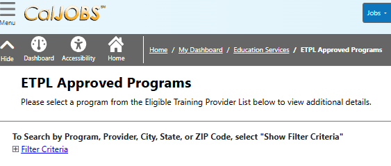 - Click on the following link: https://wtb.wa.gov/research-resources/etpl/