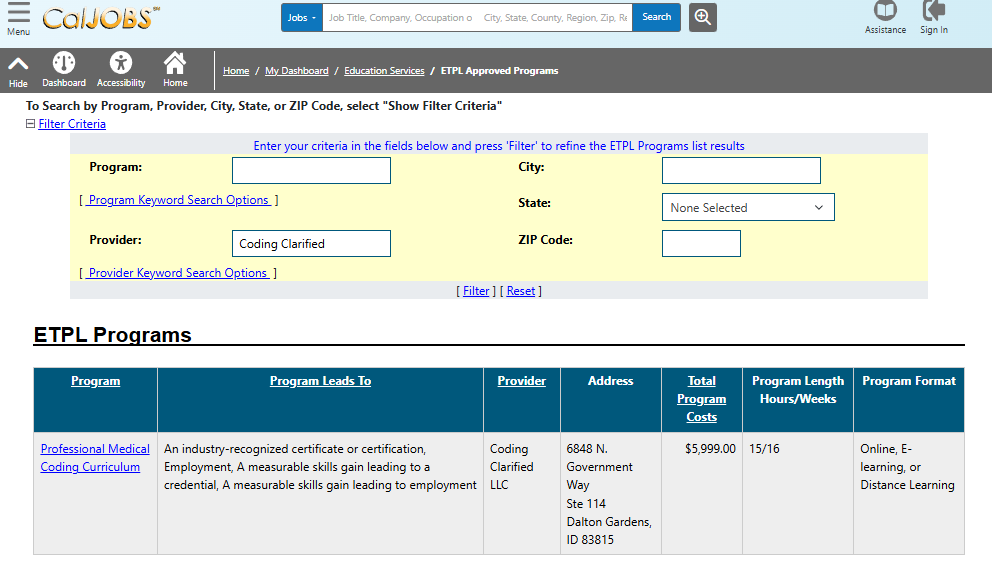 ***Advise your Case Worker that Coding Clarified is an approved training provider on Idaho Eligible Training Provider List and Utah has a reciprocal agreement. Below is the link to the Agreement. https://www.labor.idaho.gov/wp-content/uploads/WIOA/ut-reciprocal-agreement.pdf