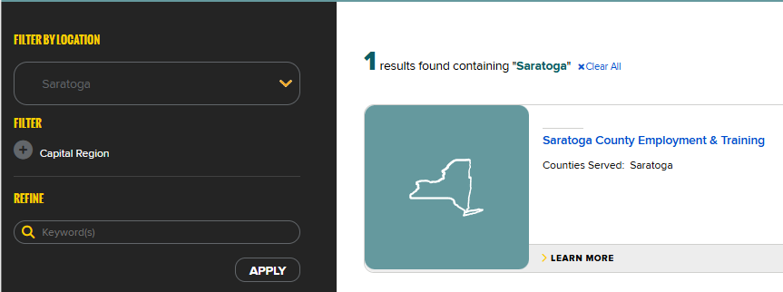 - Click the dropdown under Select an area: to select the closest workforce to your residence